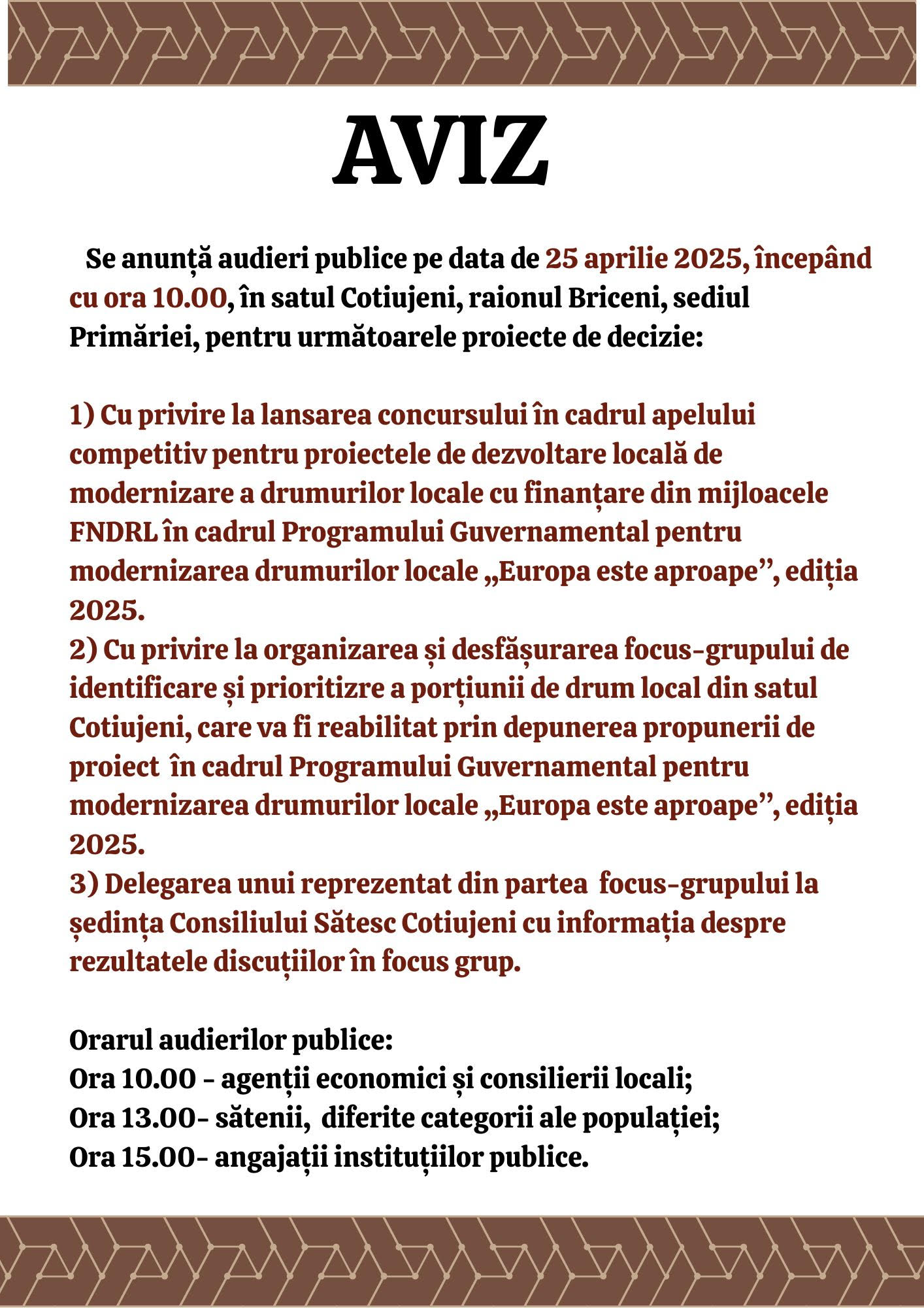 Susținem implementarea proiectului dat pentru siguranța traficului rutier și pentru o viață mai bună a cetățenilor.