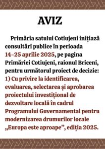 Se anunță Consultări Publice de la data de 14.04.2025-25.04.2025
